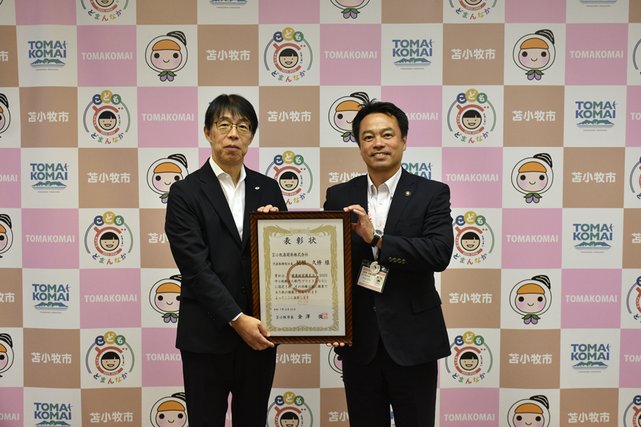 当社はこのたび、「健康経営優良法人2025(中小規模法人部門)」の認定とともに、初めて『ブライト500』認定(道内では15社、苫小牧市内では当社を含む2社)を受けたことから、苫小牧市長より表彰状が贈呈されました。