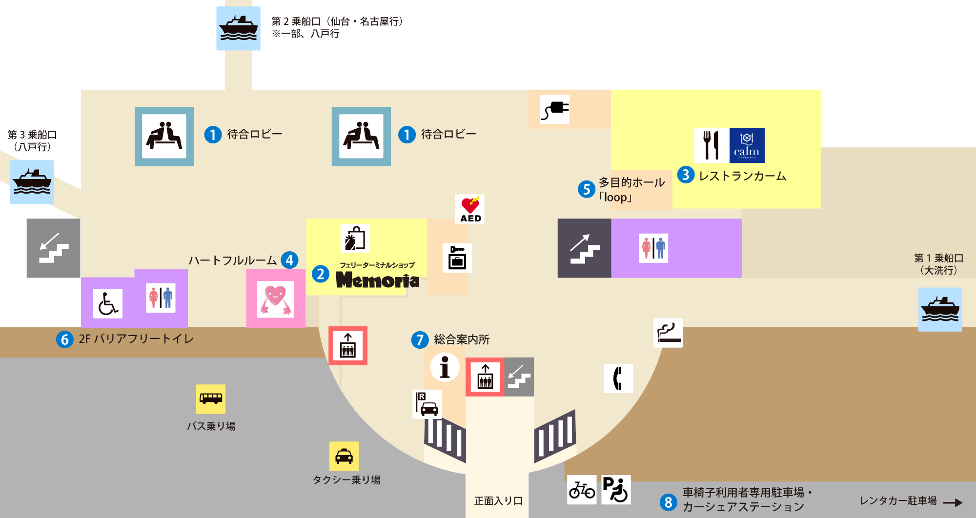 ご利用を希望される方は、総合案内所もしくは各フェリー会社の受付カウ
